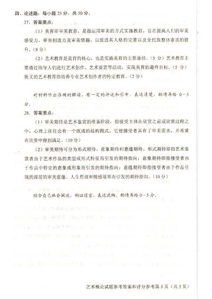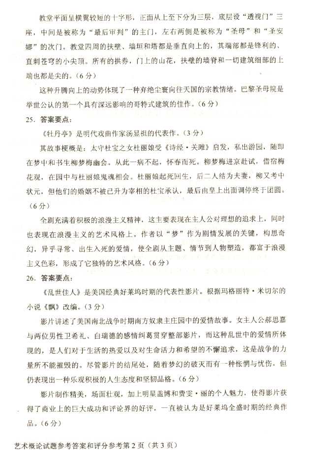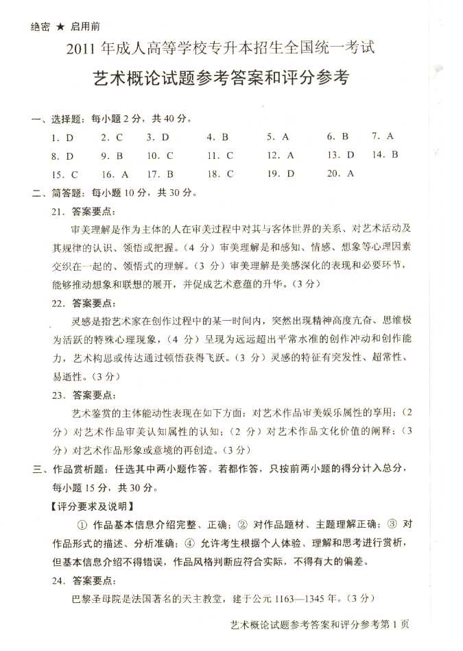 2011年全国成人高考专升本《艺术概论》试题及答案
