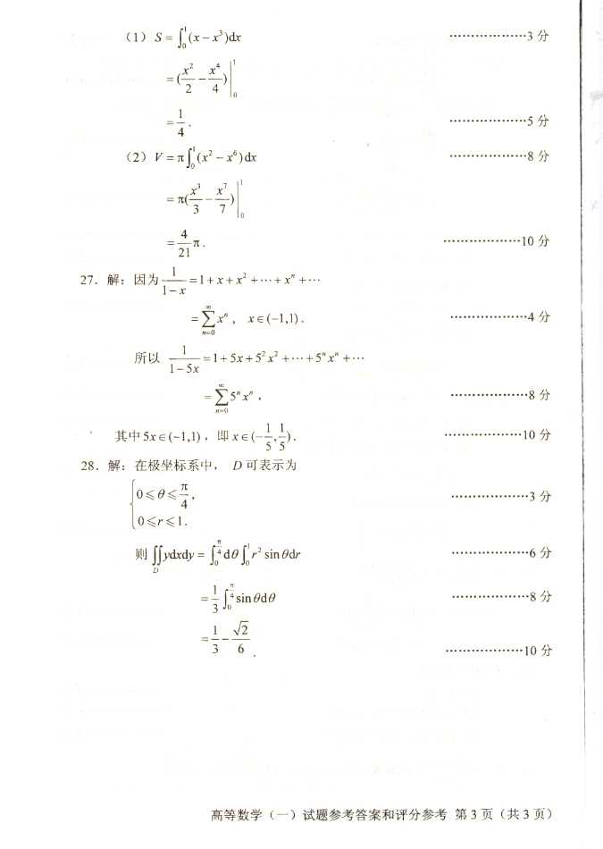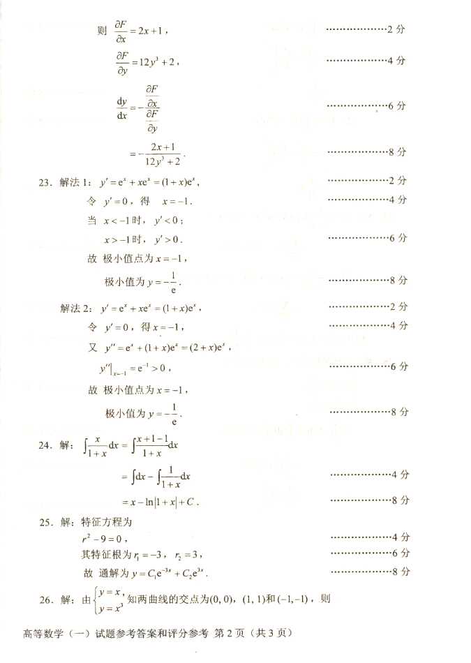 2011年全国成人高考专升本《高等数学(二)》试题及答案