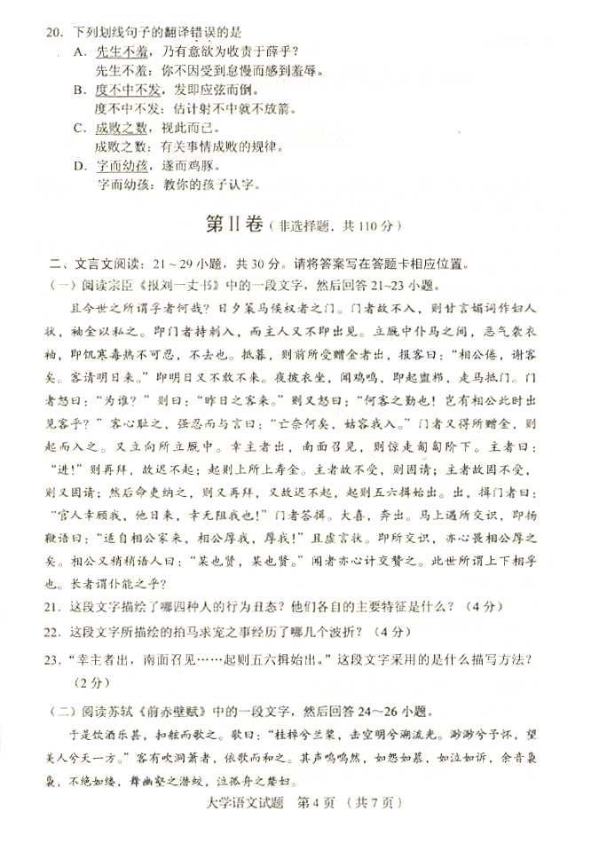2011年全国成人高考专升本《高等数学(一)》试题及答案