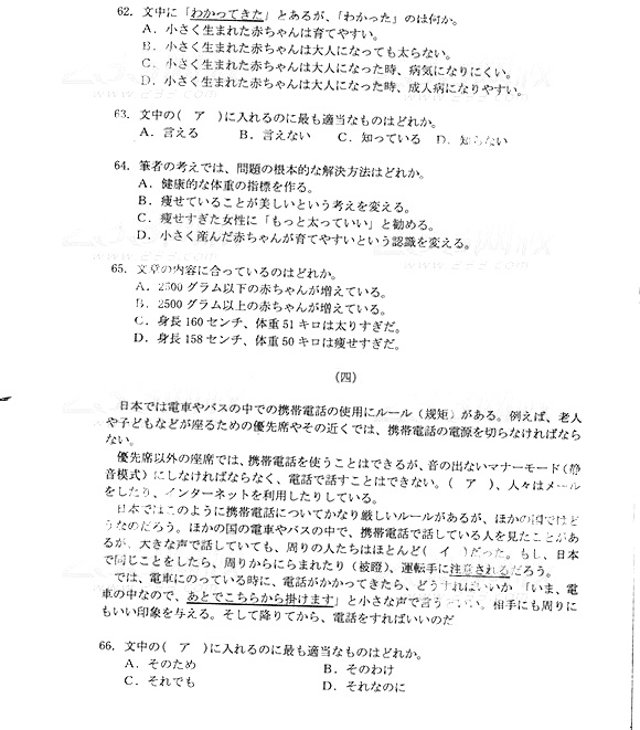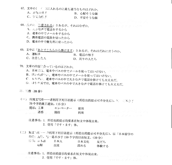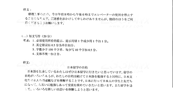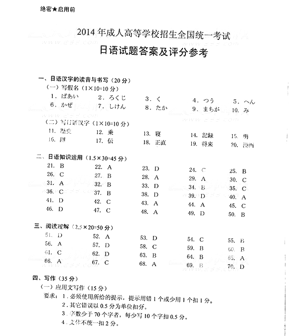 2014年成人高考高中起点《日语》真题及答案