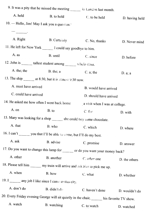 2014年成人高考高中起点《英语》真题及答案