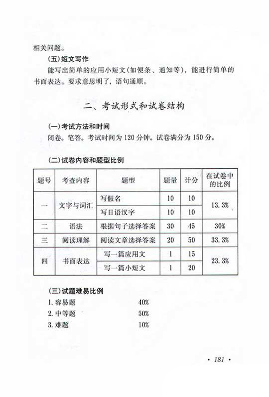 2019年成人高考高起点日语复习考试大纲