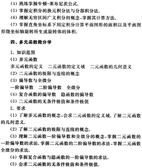 2019版成人高考专升本高数(二)复习考试大纲