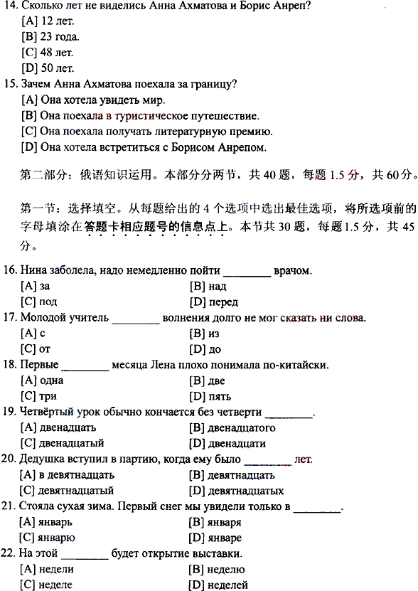 2010年全国成人高考高起点《俄语》试题及答案